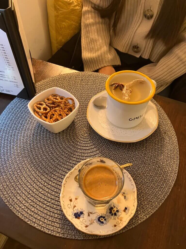私がいただいたコーヒーはしっかり温かくてラムが効いており、寒い日にピッタリという感じ。友人のジンジャーティーもスパイスたっぷりです。
