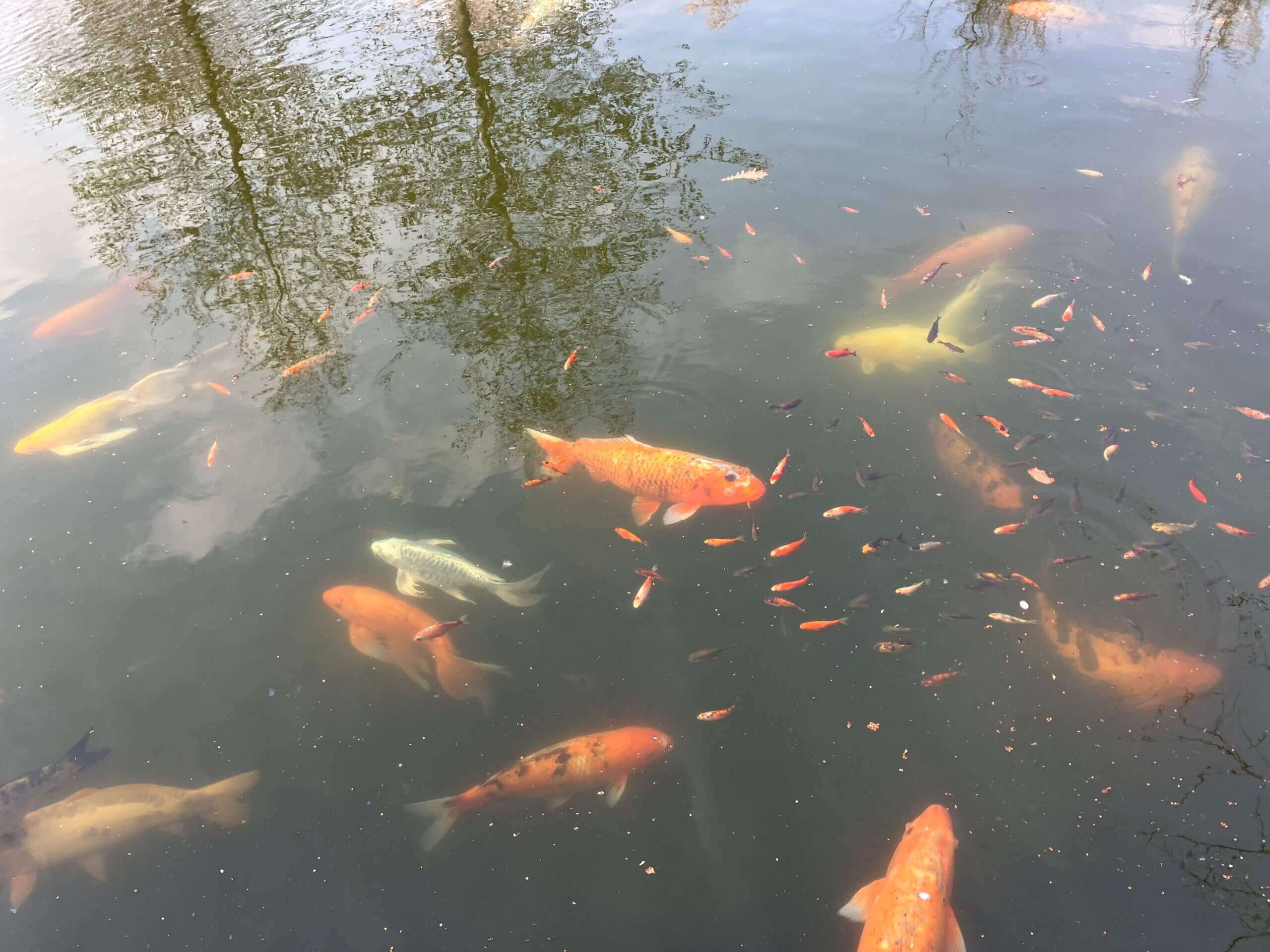 可愛いカフェもあり、池には鯉が泳いでいて、ちょっとした日本庭園。まあ、あんまり雰囲気は日本って感じではないですが・・・