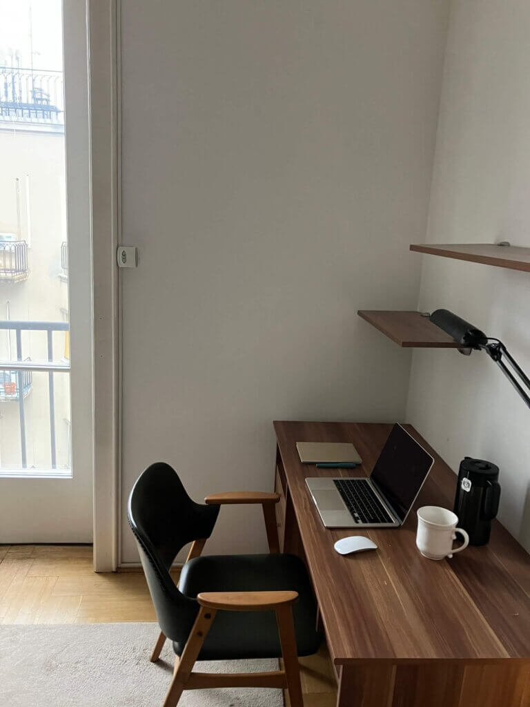 私が家で仕事をする必要なちゃんとしたデスクがあるし、エアコンが付いているし(ブダペストのアパートでは珍しいそう、うちの彼の家にもないです)、広くはないけど収納もバッチリ。