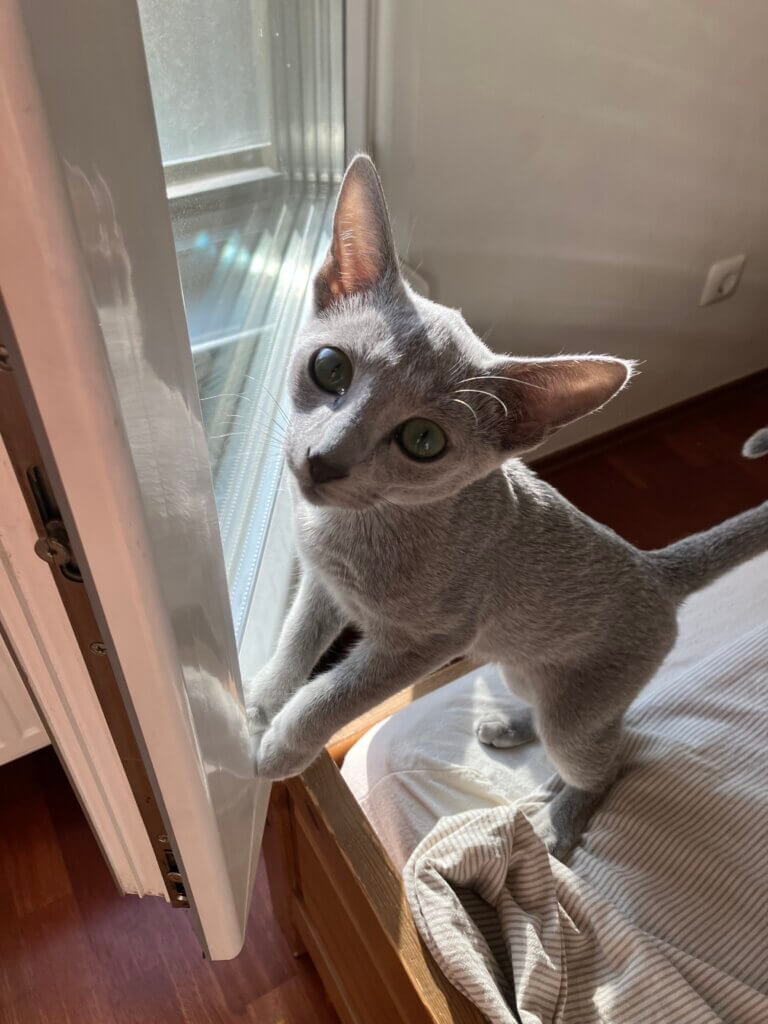 実は10月の半ばに、ロシアンブルーの子猫をお迎えしまして。