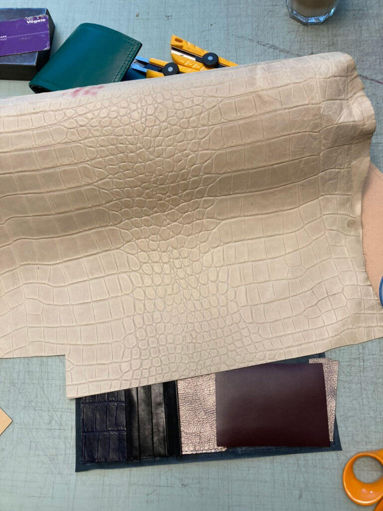 Mitter sistersでは本物の革のみを扱っていますが、その全てを食肉産業で出た皮のみを買い付けて加工している業者からのみ購入しています。