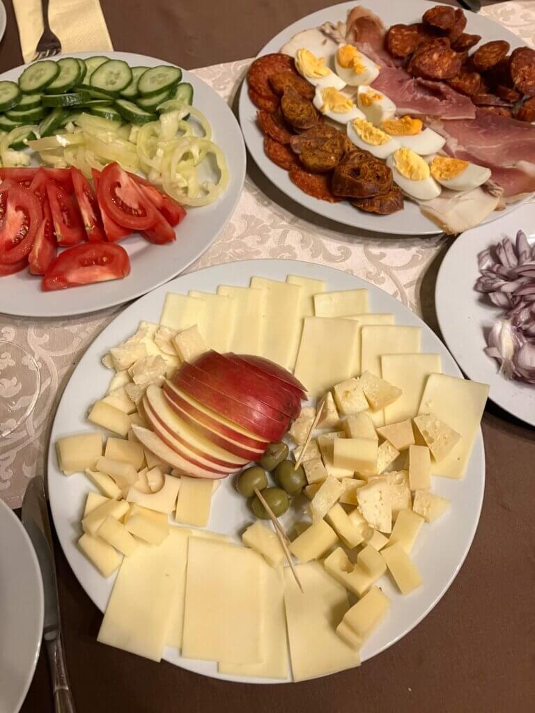ワインをいただきながら、たっぷりのチーズとお肉もいただきます。ハンガリーはチーズもお肉も本当に美味しいんですよ・・・。日本だとレストランで頼んでもちょっとしか出てこないですよね。こっちではモリッと盛られて出てきます。